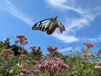 冬を除く季節に様々な花が咲き乱れいろいろな昆虫たちが姿を見せてくれます。 そして今フジバカマが満開中 今年も『旅する蝶』アサギマダラの飛来を確認しました。 多い時で、30羽は居そうです! アサギマダラは長距離を移動(渡りを)します。 日本全国で観察はできるが、見られる時期は場所によって変わる為、なかなか見ることが難しい蝶です。 短い期間でしか見ることができないので、ぜひサファリランド「バタフライガーデン」(駐車場手前)にお立ち寄りください。 晴れた日の午前中が飛来率が高めです。 動画はここをクリック |